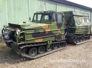 Tracked-articulated vehicle 202/203 (Bv 202/203) is a tracked terrain vehicle with very good accessibility in difficult terrain. The vehicle consists of two permanently interconnected carriages where the engine and gearbox are located in the front carriage, with a rear axle to the rear so that all four belts drive. The driver and the commander sit in the front wagon. Up to eight soldiers can be transported in the rear carriage.